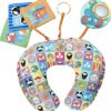 Ela possui um formato em meia lua que dá um apoio confortável ao corpo do bebê enquanto ele faz o treino da posição e, enquanto isso, pode interagir com os móbiles que acompanham a almofada.