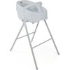 Para crianças que ainda estão desenvolvendo o equilíbrio e não se mantêm em pé, recomenda-se outros recursos, como mesinhas de atividade, triângulo ou arco, por exemplo.