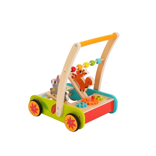 Este é o Apoiador Floresta, um brinquedo de madeira projetado para ajudar os pequenos a praticar seus primeiros passos. Este brinquedo não apenas diverte, mas também é educativo, pois traz padrões temáticos da floresta e um pequeno circuito onde a criança pode brincar, enquanto treina suas habilidades motoras finas.