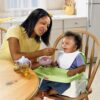 E, na hora de alimentar o pequenino, você pode retirar a bandeja lúdica e para usar a bandeja de alimentação com tranquilidade.