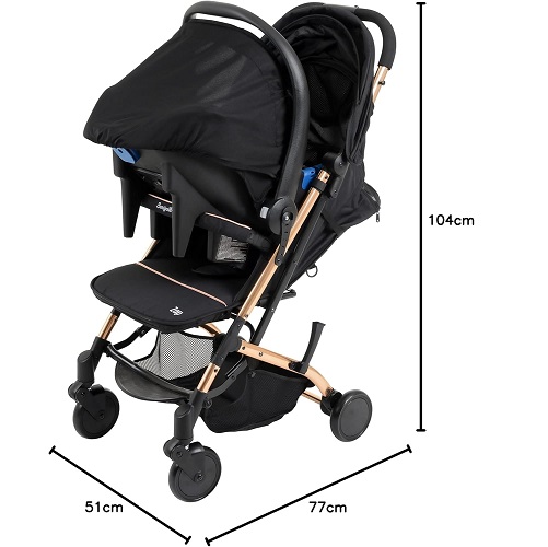 – Acompanha: 1 carrinho + 1 cinto de 5 pontos + 1 capota + 1 compartimento de sacolas;