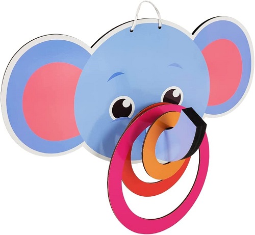 – Acompanha: 01 painel em formato de Elefantinho + 01 gancho + 05 argolas.