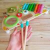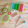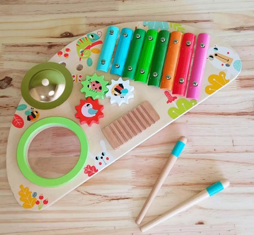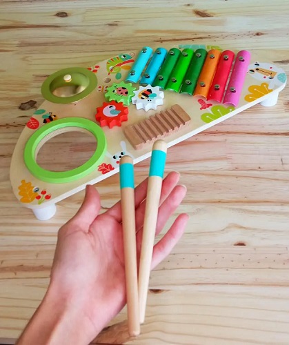 É um brinquedo que estimula a musicalidade, a criatividade, a imaginação e a expressão artística e linguística de seu pequeno, bem como a coordenação motora ampla, fina e visomotora e a percepção e discriminação visual, auditiva e tátil.