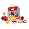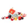 O fazendeiro Barnaby cuida dessa turma alegre do alto de seu trator vermelho. Esta fazenda é totalmente transportável, graças à pequena alça localizada no teto.