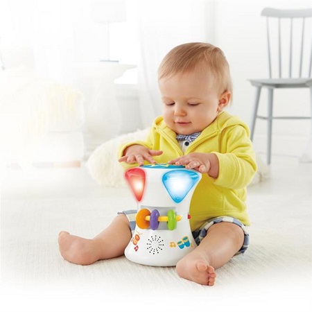 2. E, quando estiver preparado para engatinhar, o bebê pode ir atrás do tambor enquanto música e luzes o incentivam a continuar!