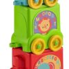 A clássica brincadeira de encaixar ficou melhor ainda, porque depois de empilhar e encaixar, seu pequeno pode juntar os blocos e formar um trem para uma nova aventura começar!